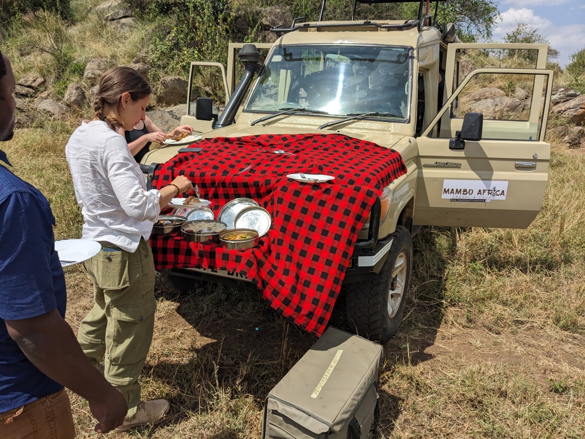 Before beginning a half-day of wildlife drives in Serengeti, arrive in time for lunch and eat your lunch boxes.